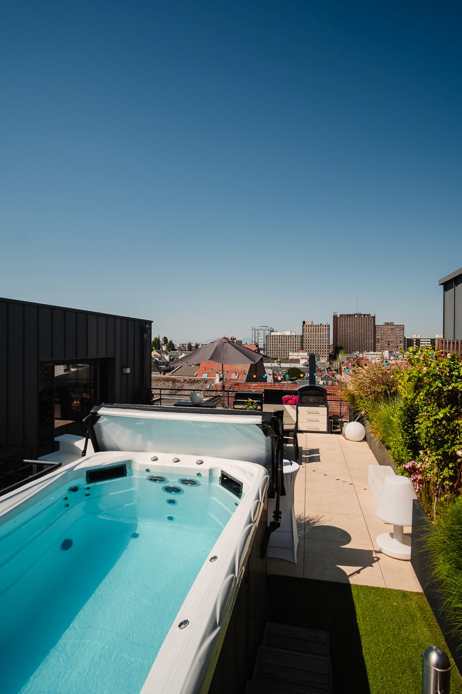 Nos 210 mètres carrés sont parfaitement situés à proximité des Hales et de tous les principaux endroits de Strasbourg, ici vous pouvez profiter d'une vue parfaite sur la cathédrale Notre-Dame de Strasbourg tout en passant une journée productive à travailler ensemble. La propriété dispose d'une table pour 8 à 10 personnes, d'un salon avec un grand écran, d'une cuisine fonctionnelle, d'une terrasse avec barbecue pour 10 personnes et d'un jacuzzi pour 10 personnes.